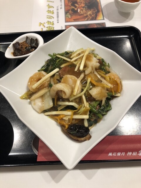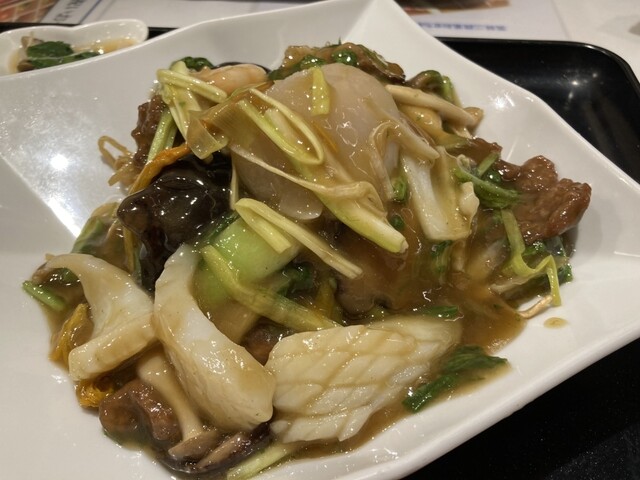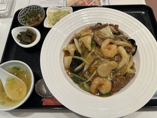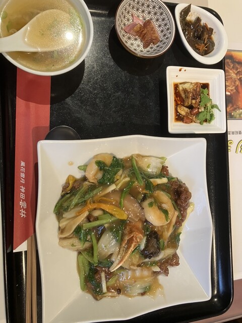 ランチタイム開店時間の7分前に着いたのにすでに大行列。ギリギリ一巡目に滑り込み。五目焼きそばをオーダー。具の海老やお肉が丁寧で上品なお味。サイドも一つ一ついいお味。美味しかったもののちょっとお上品すぎ...