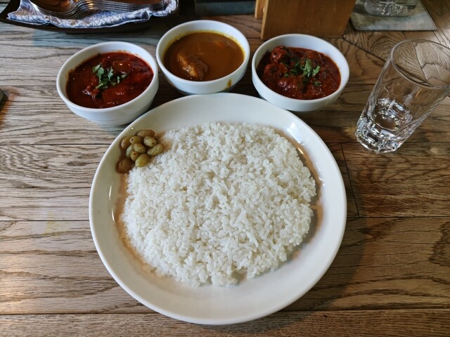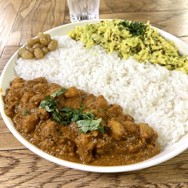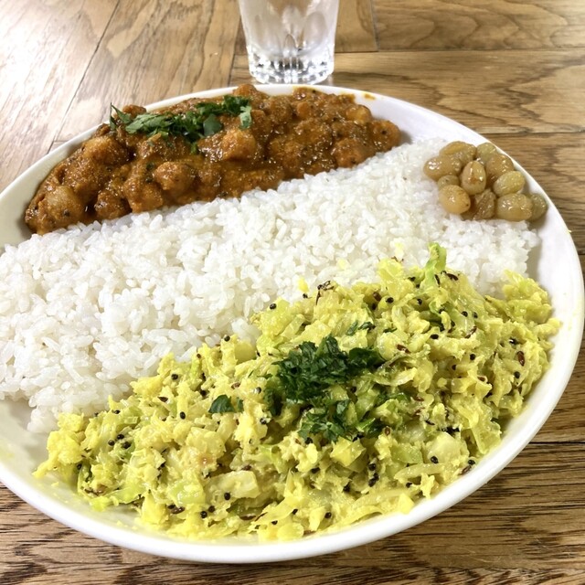 内訳は、少し辛めなチキンカレーとナスとトマトのカレーに加え、今回はオクラとムングダルカリーを...