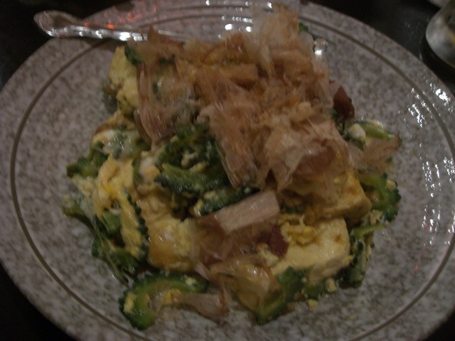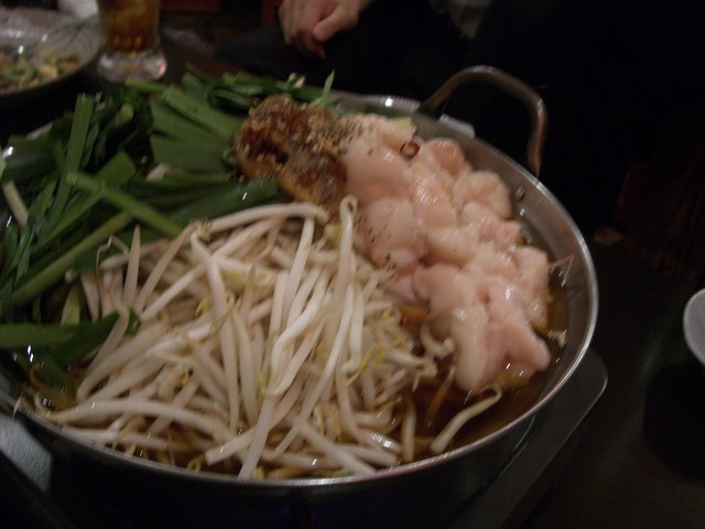 さらにゴーヤチャンプル、チキン南蛮と続いて、いよいよメインのもつ鍋ですが、ここまでで結構お腹が膨らみかけています。しかし、もつ鍋を食べ始めると丸腸のプルンとした食感と程良い脂身が何とも言えず、まさに別腹。次々と具を平らげて、もつのお替わりを2回。嫌というほどもつを食べました。さすがに最後は胸のあたりがもたれてしまいました(このもたれが翌日の昼頃まで続くとは思ってもみませんでしたが。)。