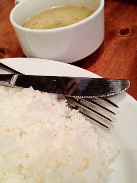 店内を見渡すと8割程度の埋まり具合で、すでに卓上にはスープが用意されていました。