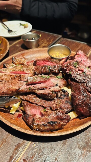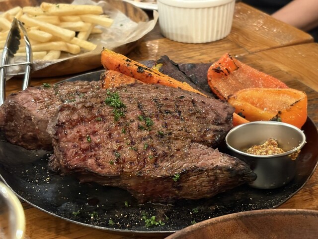 平日11時40分頃訪問。店外に2名待ちも、後々気がついたのですが、システム的に、外で注文聞聞かれ、案内の準備が整ったら、入店というシステムのようです。5、6分くらい外で待たされて。肉屋のビーフステーキプレートライス大盛(¥1200)をオーダー。大盛無料です。