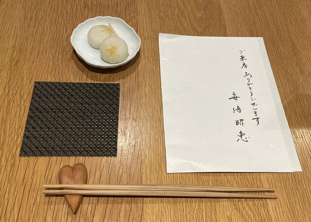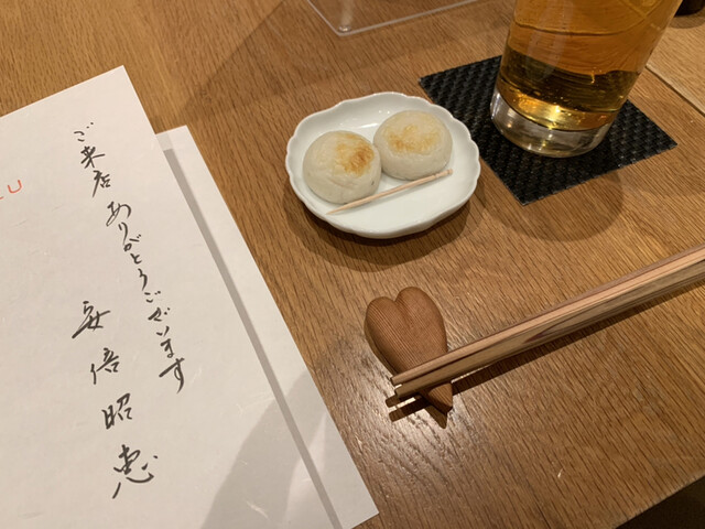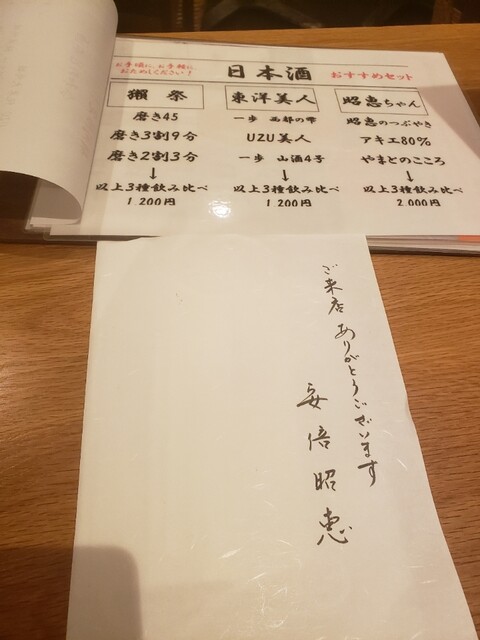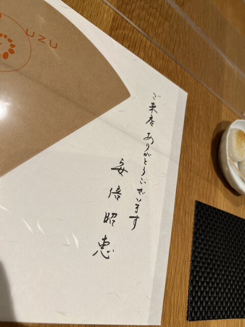 ご来店ありがとうございます、安倍昭恵、と書かれた紙でオーナーのお出迎え、どうやらマスク入れ?それにしても達筆でいらっしゃいますね!