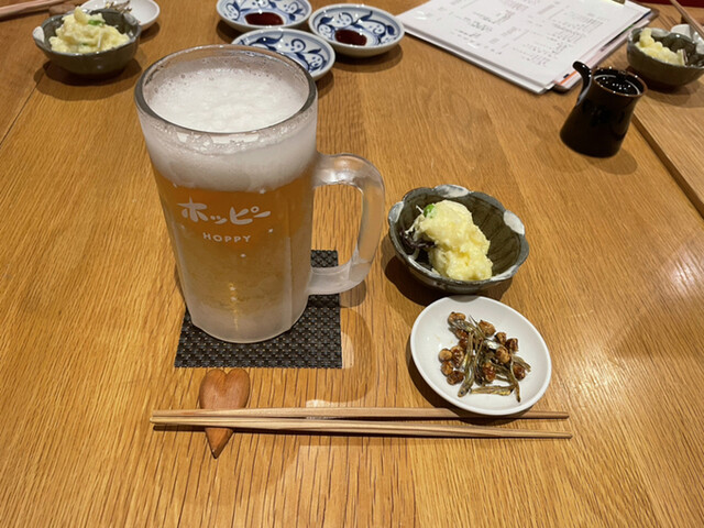 我々、本日5000円のコース。なんとホッピーを発見、さっそくオーダー。氷なしの三冷タイプです。