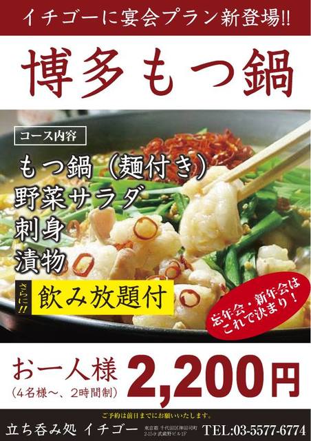 | 飲み放題コース | 飲み放題、3000円以下の飲み放題コース |
