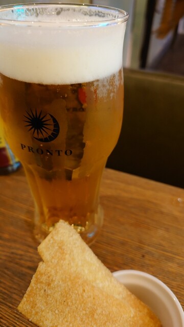 プロント系列の喫茶店の昭和レトロと現代的な内装のちょい飲み居酒屋という雰囲気。入店するときにコーヒーでも可と言っていたが、お通し代はとられるか...