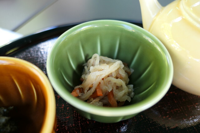 15分くらいで案内され座れました。早速メニューを見させていただき、さて何をいただこうか。よく見ると抹茶クリームソースと書いてあるメニューがありました。やはりお茶屋さんのランチ、せっかくなの...