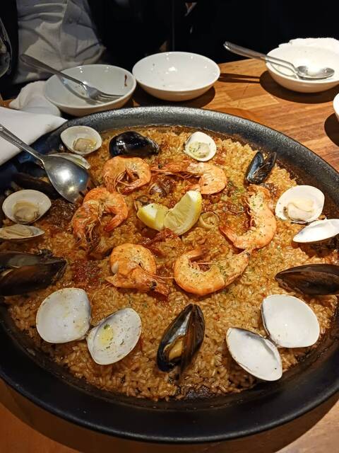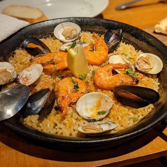 バルサミコを効かせた自家製ドレッシングの生ハムサラダで美味しくて、テンション上がりました。スペイン風オムレツ、メインは濃厚な魚介スープが染み込んだパエリア一番のお勧めです。ワインカ... 詳細を見る