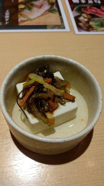 お通し480円は豆腐に漬物が乗ったもの。注文は以下の通り。価格は税抜価格。