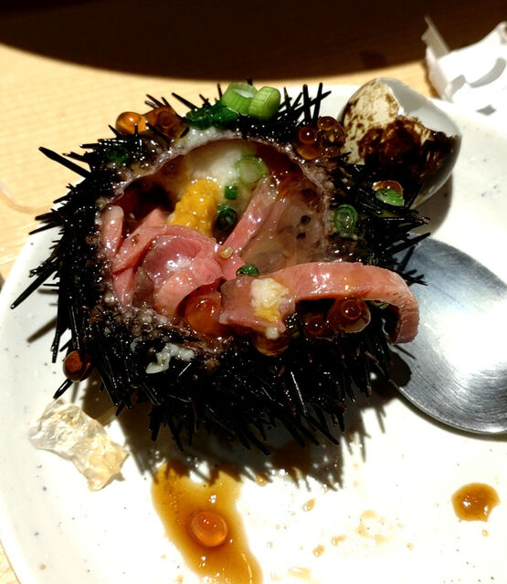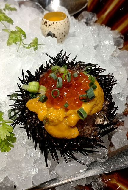 ・牛タンユッケと生雲丹の饗宴 880円/個