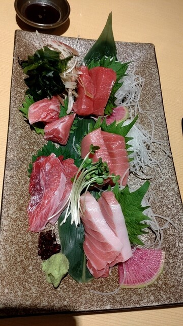 赤身、トロ、頬肉、カマかな。これはお値打ちです。味もまずまず美味しい。