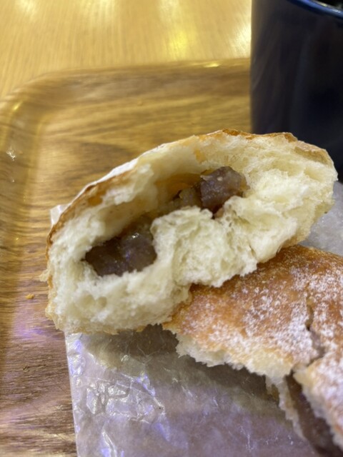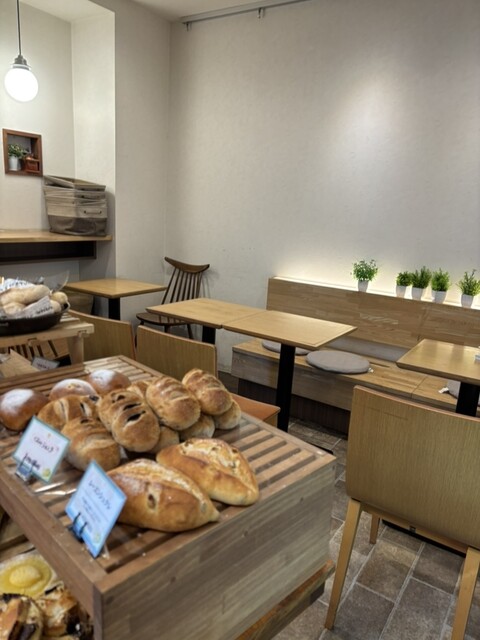 お客んたちが、店内でパンを美味しそうに食べていました。