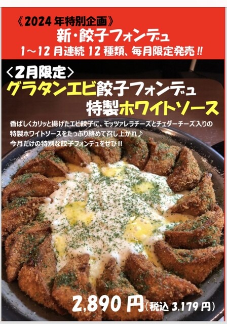 餃子料理恐らく世界一♪・【超絶!食べ放題、飲み放題「大バージョンアップ!)】ドリンク35種以上、お料理40種以上♪【150分!《プレミアム☆食べ放題、飲み放題コース》6,500円(税込7,150円】!お料理、ドリンク含めて『75種類以上』、看板商品の各種『餃子フォンデュ』5種類もOK!!。ネット予約OKです♪