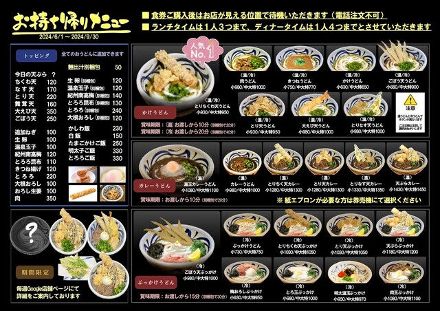 | ジャンル | うどん、カレーうどん、天ぷら |