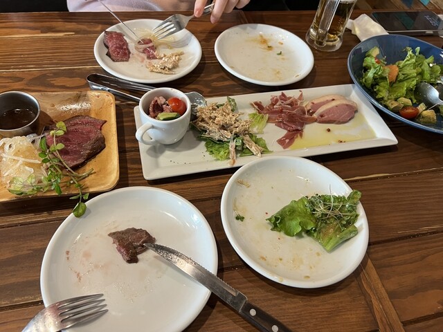 今回は嫁・子供達とではなく、仕事で東京に行った際に伺いました。 場所は新御茶ノ水駅から徒歩数分。高架下に店を構える肉バル、ブッチャーズ 八百八 御茶ノ水店さんです(●・ω・)/ 同店は、カタマリニクを使った豪快な盛り合わせ系料理が人気だとのこと。 ということで今回はビール・赤ワインと共に、以下をオーダーしました。 ①前菜の盛り合わせ :生ハムやサラミ、鴨ロースなどが盛り込... 詳細を見る
