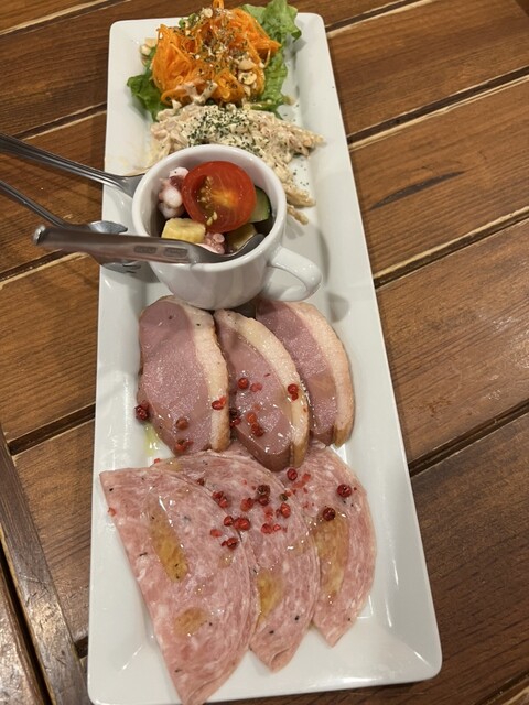 :生ハムやサラミ、鴨ロースなどが盛り込...