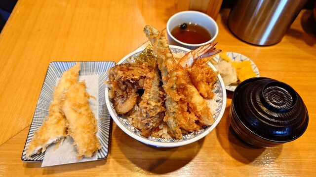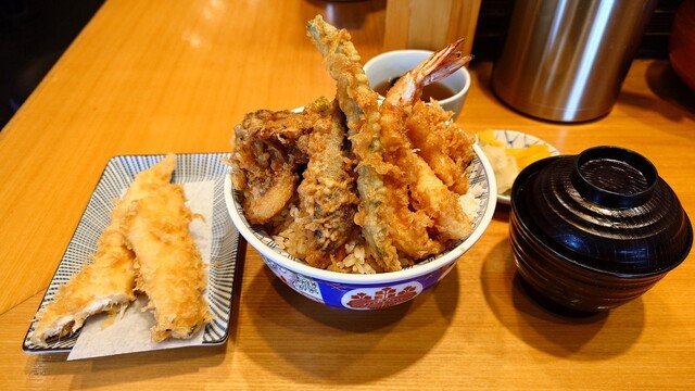 別れを惜しむ意味で、お昼にお伺いしましたが、同じような近隣の方が多数いらして、お店は大盛況。メニューから天ぷら御膳が消えるなか、基本の天丼(梅)を気持ちを込めてポチッとな。...
