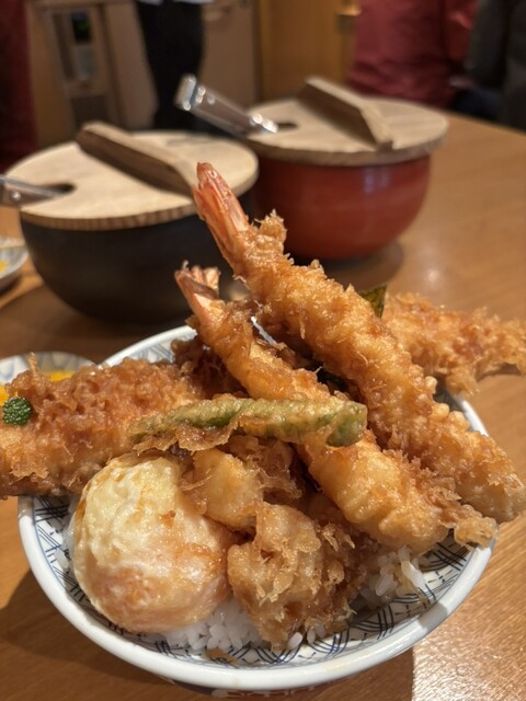 建物の老朽化により6/12(木)をもって閉店となる「神田小川町店」。 普段よりにぎわってました。 外の券売機で梅(1200円)を買って店内へ 席には、黒豆が2つ入った空の湯飲みがセットされてまして、自分でお茶をつぎます。 天丼が出てくるまでのあいだ、卓上の、がりごぼう をいただきます... 詳細を見る