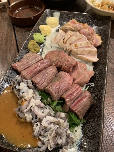 朝びきの銘柄鶏『匠の大山鶏』と、新鮮な鳥牛刺し盛りや炭火焼鳥・牛串が食べれるお店★2時間飲み放題¥980/1名