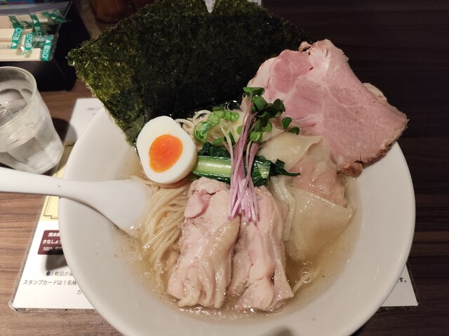 気を取り直し塩生姜ラーメンワンタン入りにトリュフ...