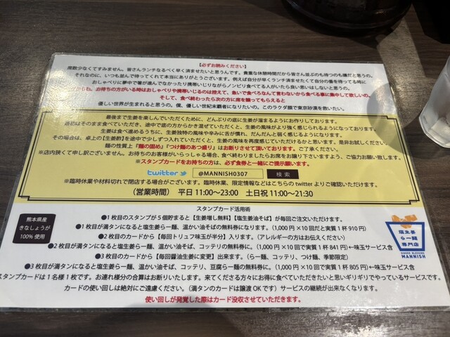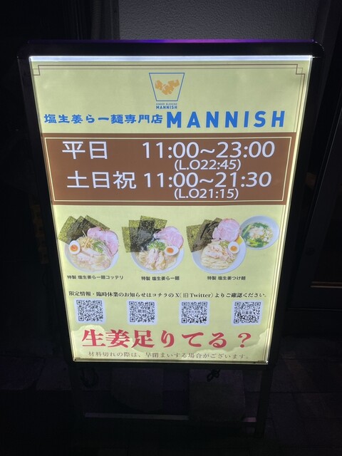 塩生姜らー麺専門店 MANNISH 淡路町本店