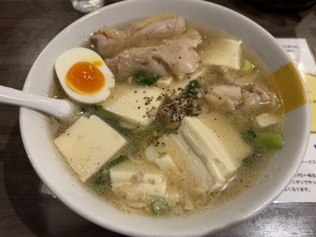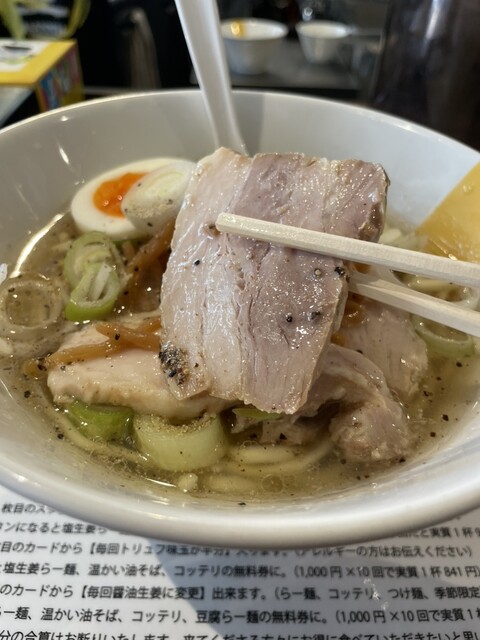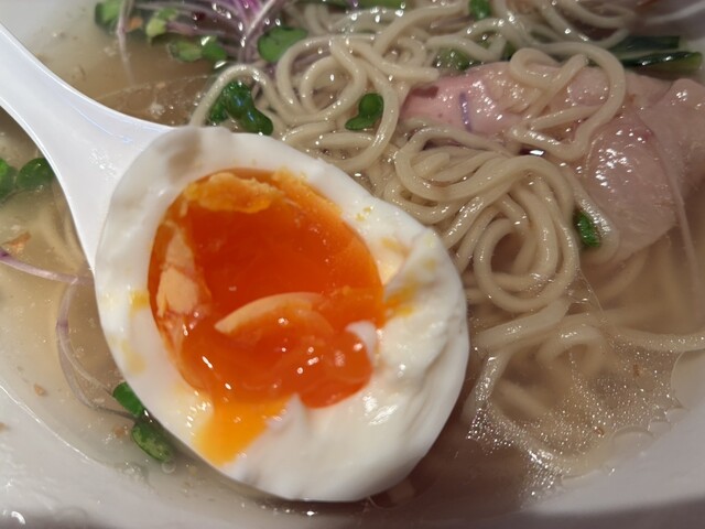 券売機で生姜ラーメン塩にトリュフ卵を乗せて購入。卵は本当にトリュフ味!ラーメンは下に沈んだ生...