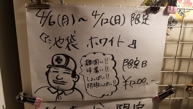 池袋ホワイトは説明の通りパンチの効いた脳にガツンとくる味わい。歯ごたえのある麺にスープがよく合う...