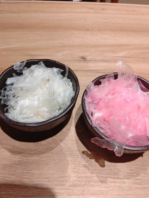 お通しの削り蒲鉾は、ピンクの麗しいビジュアルで来るのですが、なんと!!