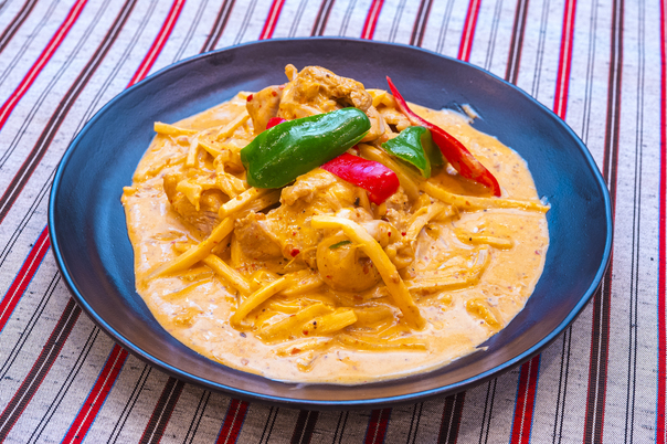 グリーンカレーは絶品!たけのこがたっぷり入っていて、シャキシャキとした食感がアクセントに。大きめにカットされたお肉も柔らかく、スパイスの効いたカレーとの相性は抜群です。辛さは適度で...