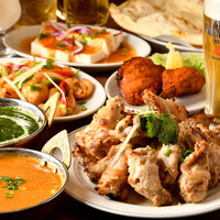 本格インドの肉料理をたっぷり楽しめる大満足のコース! 炭火で香ばしく焼き上げた「マライカバブ」や「シークカバブ」に加え、選べる5種のカレー、ナン&ライスは食べ放題!スパイス香る温製豆腐やクミンポテトなど、前菜も充実の全11品。 2.5時間の飲み放題付きで3,900円!宴会や仲間とのお集まりにぜひご利用ください。 ・40名様以上で貸切できます! ・店内に完全分離の喫煙スペースを完備!寒い冬や暑い夏でも快適! ・3時間飲み放題付きプラン(4,500円)もご用意!お電話にてご予約ください。