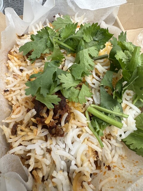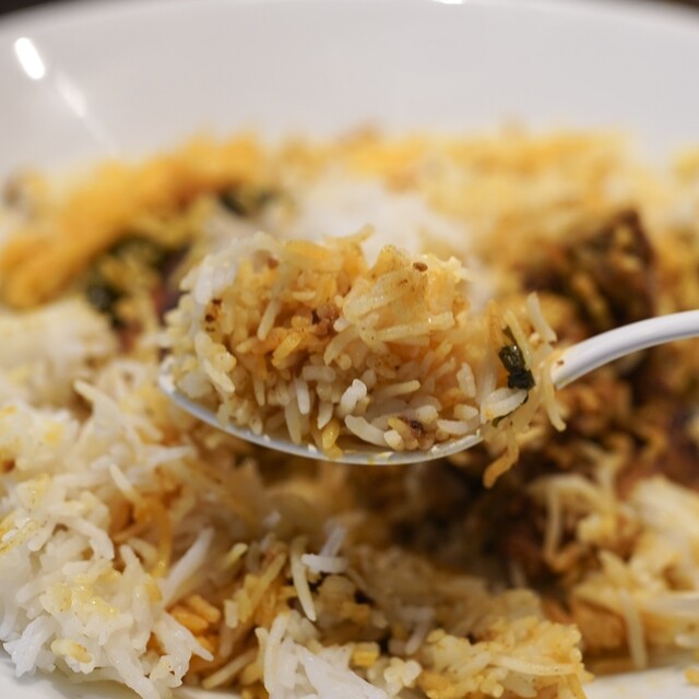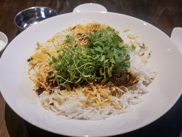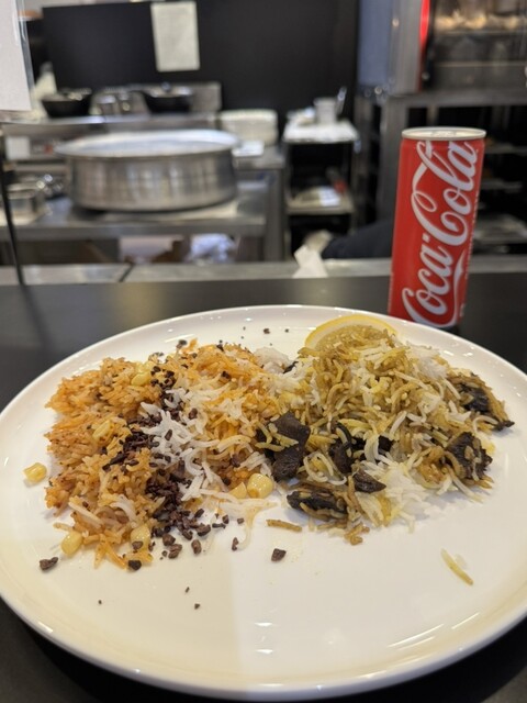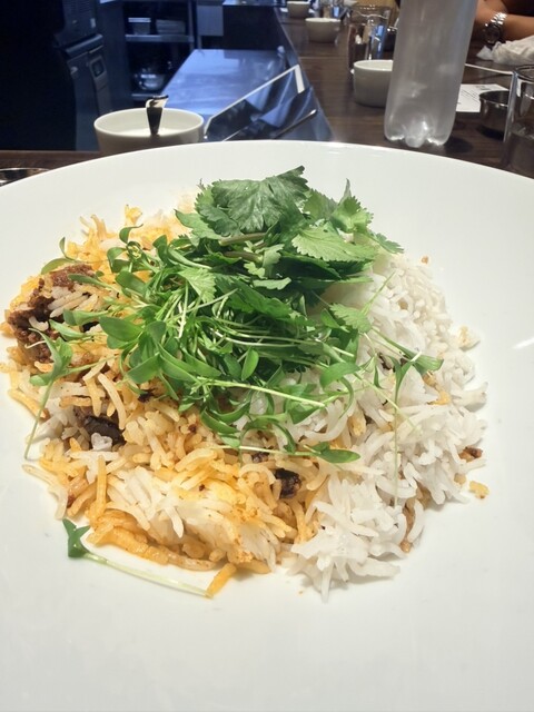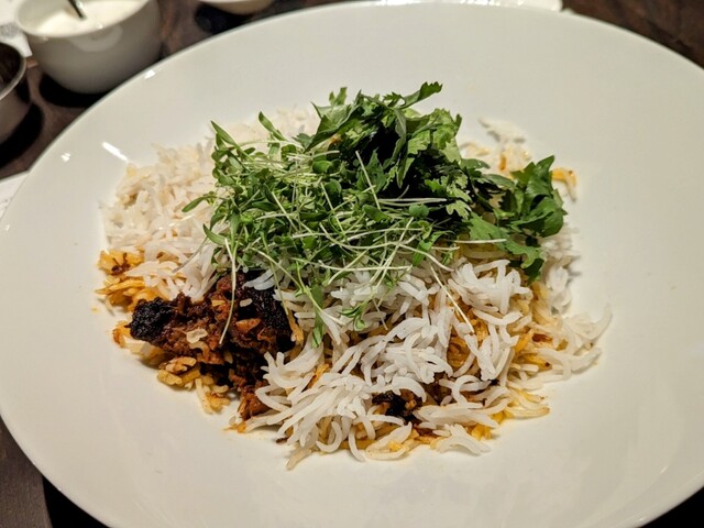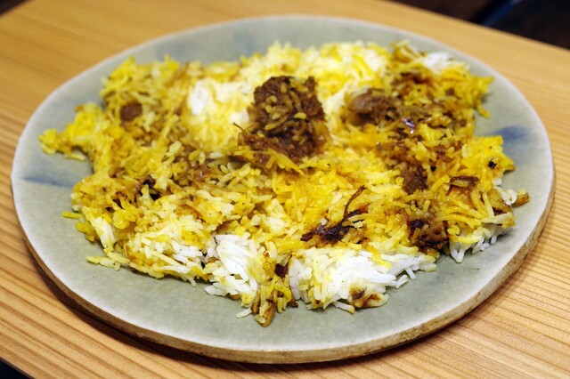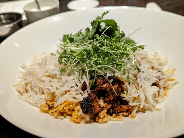 正午にランチを頂きました。 店内にはコの字型のカウンターに10席あり、ツーオペで運営されていました。 当日、こちらで提供される料理は、 「マトンビリヤニ@3,000円」 ... 詳細を見る