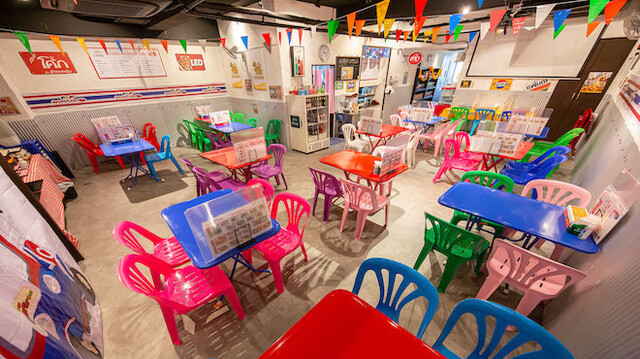 確かにカラフルな椅子とか、屋台のような雰囲気出してます。