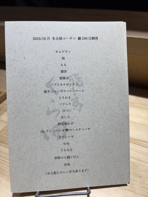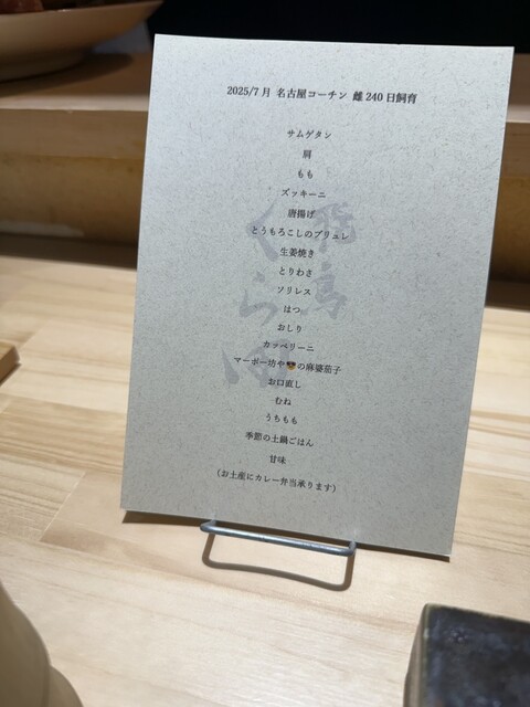いわゆる焼鳥のコースというよりは、鶏肉のコ...