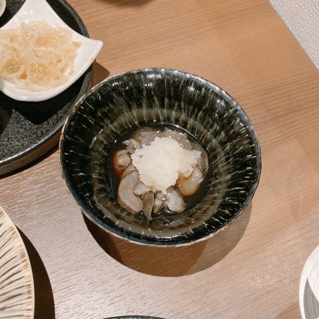 大根の天ぷら、なまこの酢漬け、トマトと蓮根のきんぴらに白菜と牡蠣のおひたし...