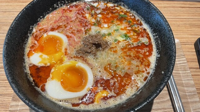 また来てみました。最後の1席でした。続いて入店された方は時間かかると言われて帰られてました・・・。相変わらず白胡麻担々麺のみの提供のようです。干し海老トッピングで発券,1,080円... 詳細を見る