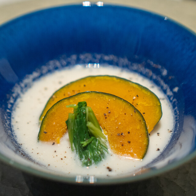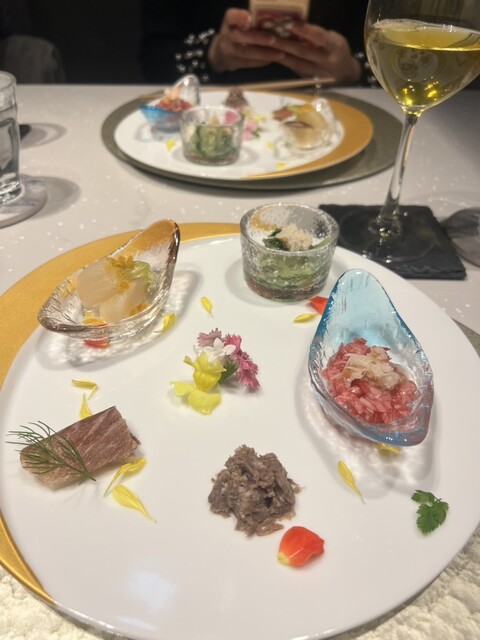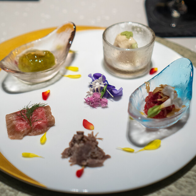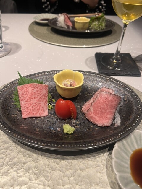 【期間限定 神戸牛肉割烹ショートコース(15,000円)】をいただきました。 はじめに、こだわりの出汁スープが2点 鹿児島県産鰹節一番出汁 神戸牛自家製白湯スープ 沢山のメニューが目白押しのコースですので、どんどんお皿が出てきます! 旬菜と神戸牛の前菜五点盛合せ めっちゃ美しい盛り合わせ! ズワイ蟹と京水菜のお浸し-土佐酢ジュレ 燕の白煮-カラスミがけ・ ズワイ蟹... 詳細を見る