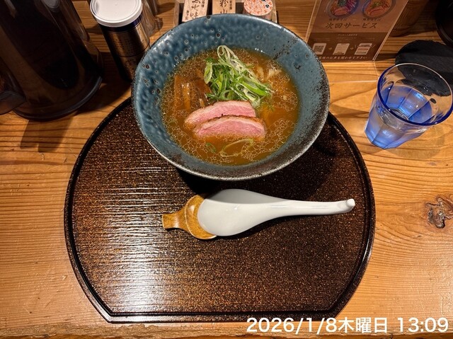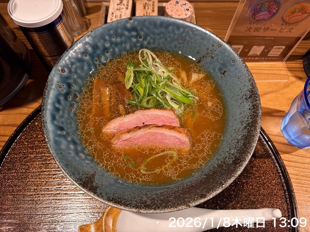 1月平日、この時期にしては暖かい。 12時に訪問、先客1名のみですぐに座れました。 その後、食べ終わるまでに7割くらいの入りになってましたね。 店外の券売機にて、 鴨白... 詳細を見る