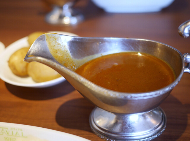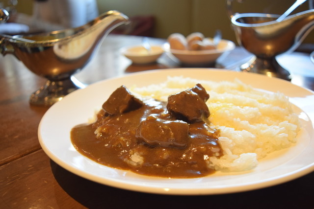 1982年創業の欧風カレー専門店。カレー激戦区の神保町で、不動の人気を誇る老舗です。板橋のインディラさんで修行された後、神保町で独立開店されています。近くには神保町カレーの龍虎とも言えるボンディーさんがあり、そちらもインディラ出身の方が独立されたお店です。