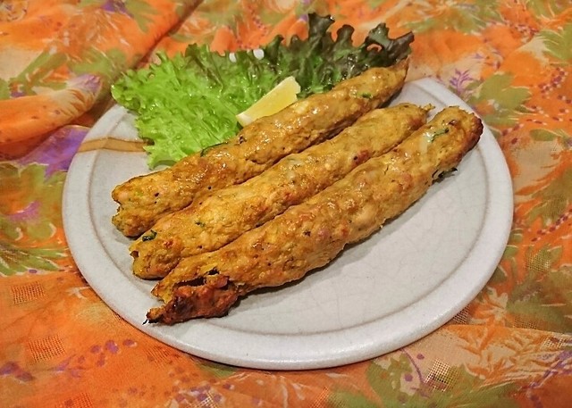 鶏肉と豚肉のミンチにシークカバブ (by お店)