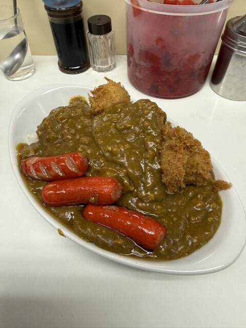 今回はシュウマイとウインナーのカレーをいただきました。 シュウマイと名乗るのは見た目一口カツ、中身は確かに大ぶりなシュウマイですがメンチカツと呼んでも良さそう?味付けはシュウマイか。 昭和レトロなカレーは他でそうそう食べられず、こういうお店はもうなかなかない。 またお邪魔します。 ランチで訪... 詳細を見る