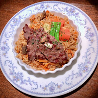 ジャスミン米を使用し専用のガス釜で炊き上げます かぐわしいクミンと風味豊かな牛ソテーの組合せをお楽しみください