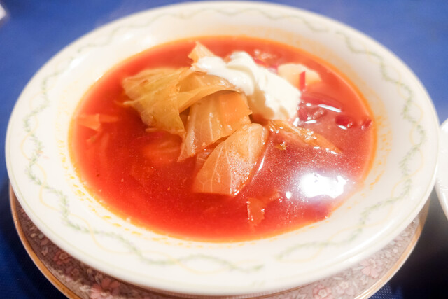 御茶ノ水で1965年から続くロシア料理屋さん。 こちらのロールキャベツとボルシチが絶品であり、長らく通わせてもらってます。 しかしご主人様が食道癌にかかりしばらく治療のため変則営業が続いてました。 ようやく治療がひと段落しご主人様が復活されたので金曜日の夜にオヤジ1匹突撃です。 ほぼ一年ぶり18回目の訪問。 ◾️店内様子 元気そうなご主人様の姿を見て一安心。 あといつものシェフと... 詳細を見る