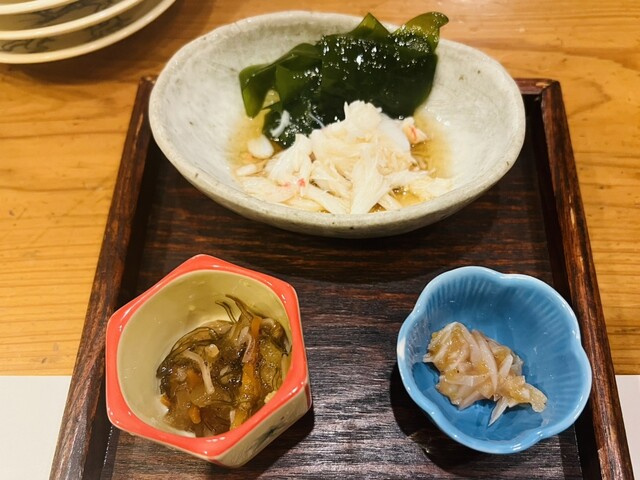 自慢の「二八そば」をはじめ、季節に合わせた「変わりそば」や3つの味が楽しめる「三色そば」が人気です。 こだわりの一品料理や煮物、揚げ物などの和食メニューも充実しており、市場から仕入れた旬の食材を日替わりメニューに加えております。 店主が自ら厳選した日本酒、焼酎などアルコール類を豊富に揃えており、お料理との相性も抜群です。 またランチタイムでは、昼にしか食べられない数量限定のメニューもご用意しております。 その他、2名様からご予約いただけるコース料理のご予約も承っております。旬の素材をふんだんに使用した料理をお楽しみ下さい。 大手町からも程近く、お仕事帰りのサラリーマンや女性おひとりのお客様も多くいらっしゃいます。 都会の喧騒を忘れられる落ち着いた雰囲気の中で、寛ぎのひと時をお過ごし下さい。ご来店心よりお待ちしております。 |