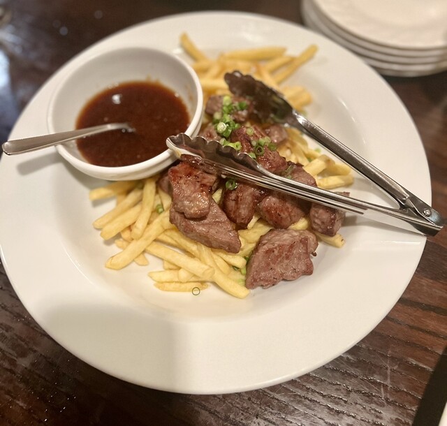 こちらのお店は、私の通勤路の靖国通り沿いにある店です。以前より気になっていたのですが、平日の18:30に職場の同僚と予約してお伺いしました。 個室で、飲み放題つきコース5000円です。 個室は8名ほど入れそうな広々とした雰囲気で、とても良いです。5000円の飲み放題コースなので、あまり料理には期待していなかったのですが、前菜、スペアリブ、ガーリックシュリンプ、サイコロステーキ、ピザ、パスタ、デ... 詳細を見る