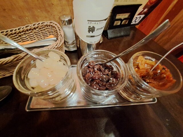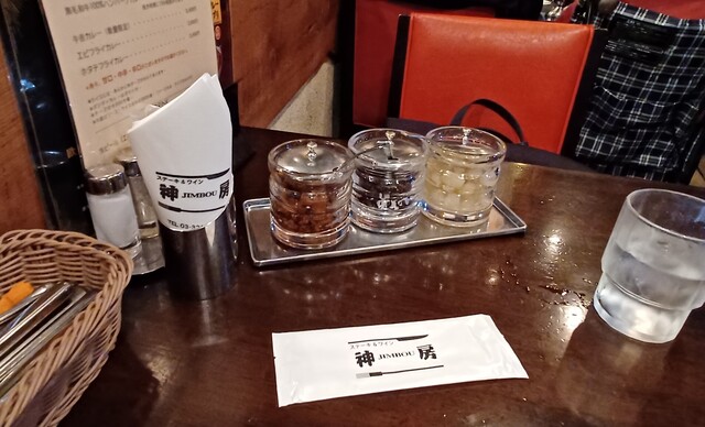 昔懐かしい風情が残る古本街の、一本路地を入ったところある隠れ家のような佇まいの店が「ステーキ&ワイン 神房」です。天然の日光杉を使用した店内は、鮮やかな赤い色の椅子がポイントの和モダンな空間。木の温もりを感じながら、愛情とこだわりをたっぷり注いだ肉料理が味わえます。