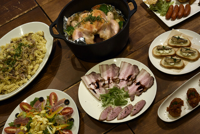 夜のメニューは自家製の燻製やダッチオーブン料理などを中心にリーズナブルな価格で提供しています!お酒もかなり多くの種類ありマスよ!