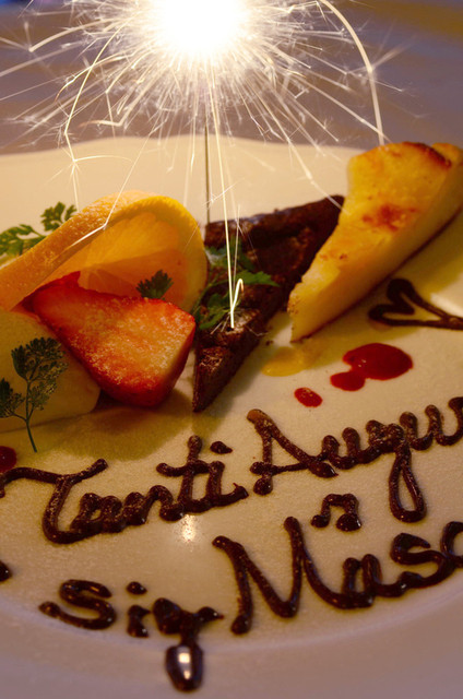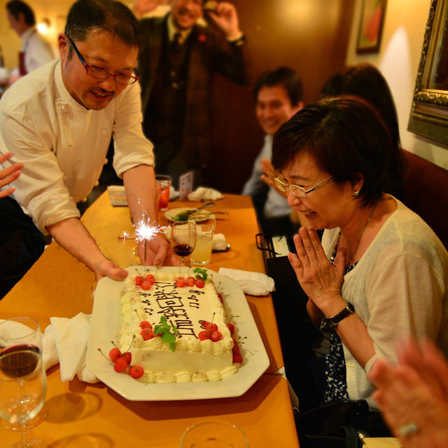 シェフ手作りのケーキでサプライズパーティー... (by お店)