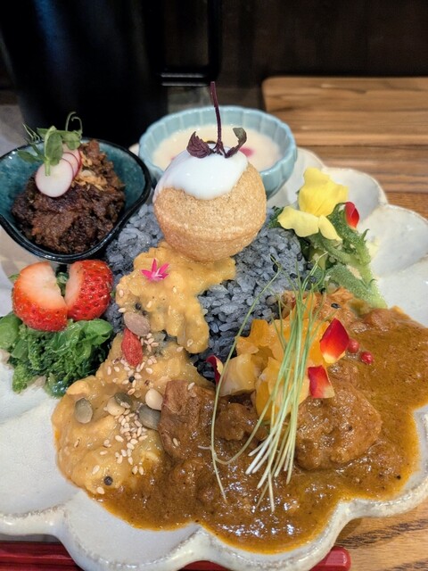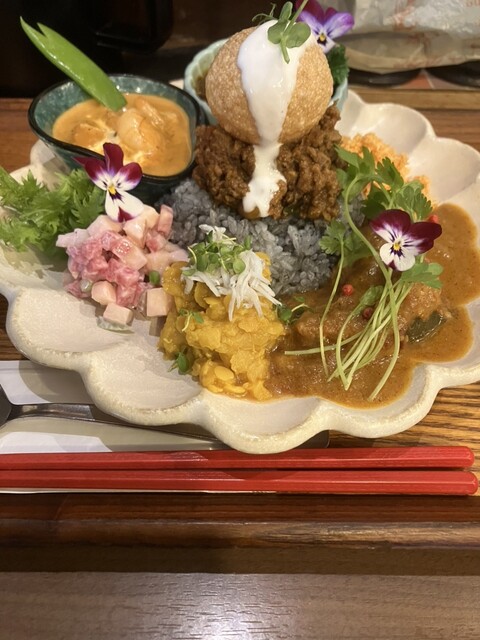 ネットスコアの高いお店で、近くだし、なんとなく行ったら、列も短いし入店することにした。客入れの応対も感じが良く、忙しい店をキッチリとまわしている感じがした。肝心のカレーの味は、オリジナリティが高い珍味...