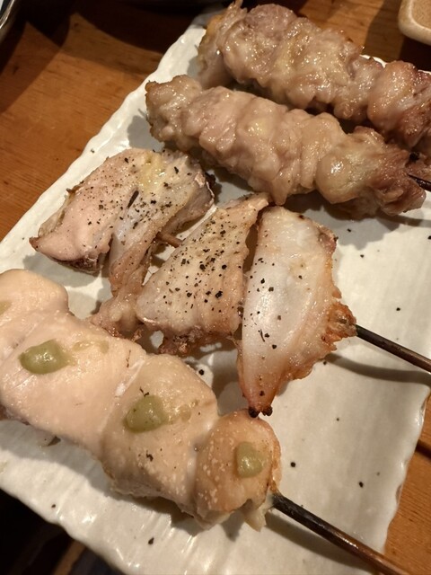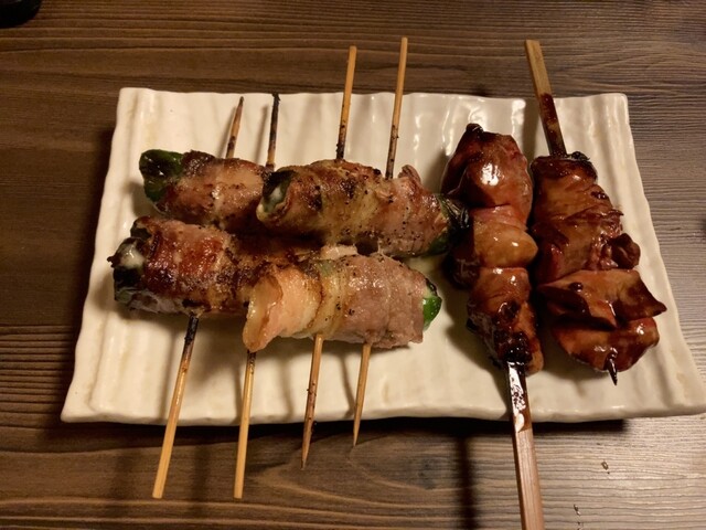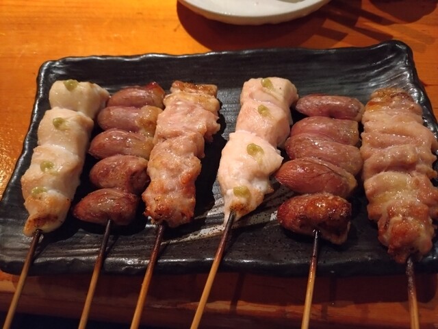 串焼きが特に美味しくて、塩ならハツ、タレならレバーとハツモトがおすすめです。