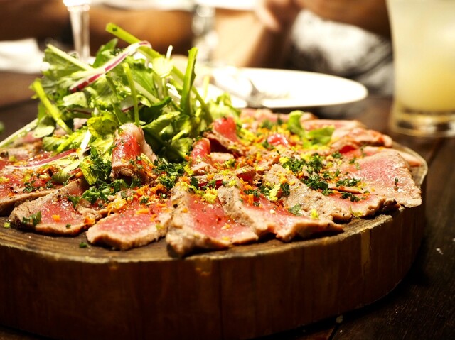 お店の真ん中にある炭火台で豪快に焼き上げる自慢のラム肉は、燻煙を纏い噛めば噛むほど旨みと肉汁が溢れ出すのが特徴。ラムに会う20本以上のワインとともに心ゆくまで楽しんでみて下さい。