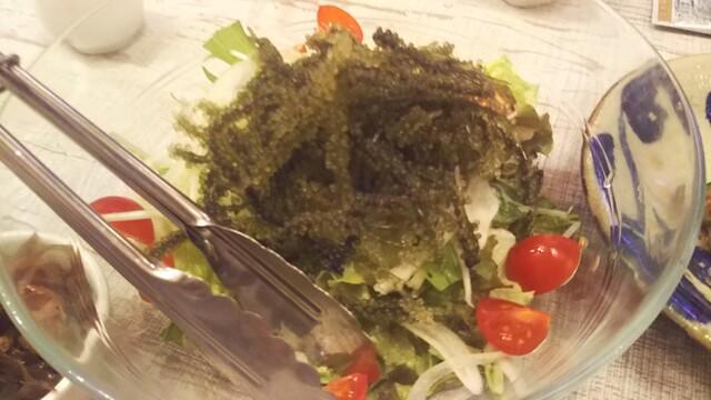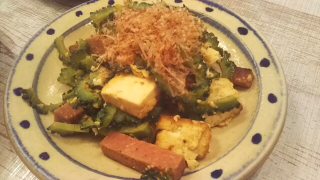 沖縄のクラフトビールがあるみたいですが生オリオンビールを頼んだらお通しとウコンをくれました(笑)胡瓜の島唐辛子和え、ジーマミー豆腐、海ぶどうのプチプチサラダ、アグー豚メンチ、ゴーヤチャンプルー、スパイラルポテト、沖縄焼きそばを注文。レパートリーも幅広いし全体的にも良いし店内は清潔感あって明るいから女性客が多かったです。入って良かったですね。